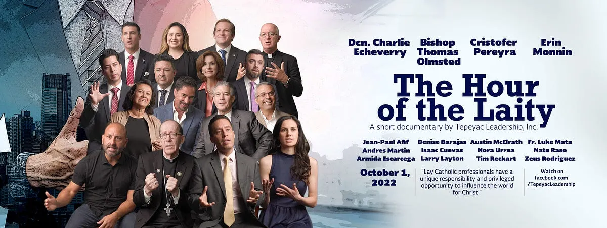 Tepeyac Leadership, Inc. (TLI) announces the upcoming release on October 1, 2022, of its short documentary film, The Hour of the Laity, about the urgent need for lay Catholics to engage society as civic leaders. The 11-minute film will be available on TLI’s YouTube and Facebook accounts.